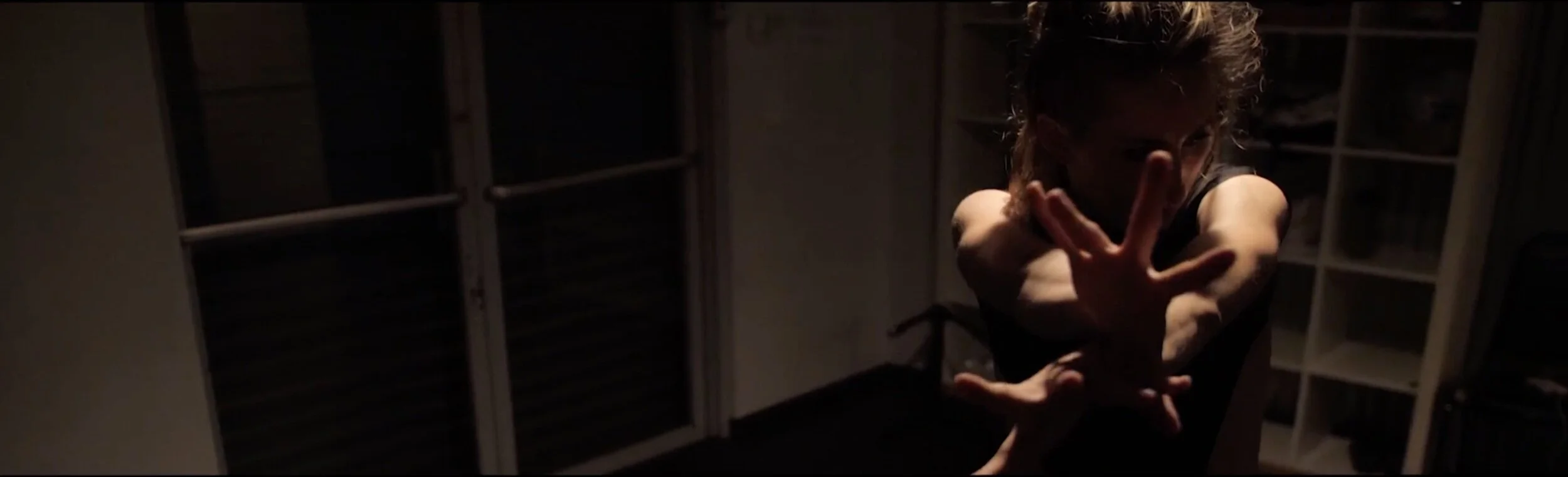 Dana brought along collaborator David Bunzey, DP, to help provide camera direction for the shoot and collaborate on how to leverage a lackluster space. After one rehearsal, the three of them spent an evening running camera as Dana explored movement. The energy in the room became palpable as the three artists investigated the feeling of anxiety through dance and film.